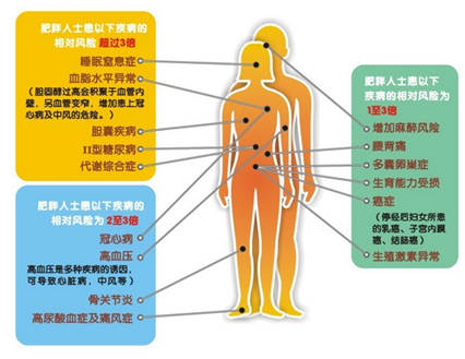 在2013年6月18號(hào)美國(guó)醫(yī)學(xué)會(huì)官方正式宣布將肥胖定義為疾病,而不是簡(jiǎn)單的體重過重。肥胖不僅影響形體美,而且給生活帶來不便,更重要是容易引起多種并發(fā)癥,加速衰老和死亡。另外,從醫(yī)生上講,肥胖是一種慢性病,體重超標(biāo)不但會(huì)讓個(gè)人體質(zhì)下降,甚至因?yàn)檫^度肥胖會(huì)增加如糖尿病、心腦血管疾病、心臟病、中風(fēng)等慢性疾病發(fā)病風(fēng)險(xiǎn)并引發(fā)其他一系列健康問題。其中最新實(shí)驗(yàn)研究表明:肥胖可剝奪人們20年的健康,甚至減短1至8年的人體壽命。