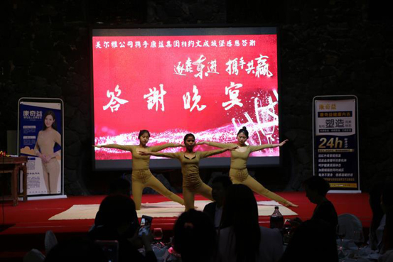 中康聯(lián)合減肥醫(yī)學(xué)研究院康奇益功能性服裝研究中心美業(yè)聯(lián)盟新模式答謝晚宴由精彩的瑜伽表演開場,瑜伽老師們用柔美的舞蹈,靈動的身姿展示著康奇益功能性服裝研究中心功能型內(nèi)衣。